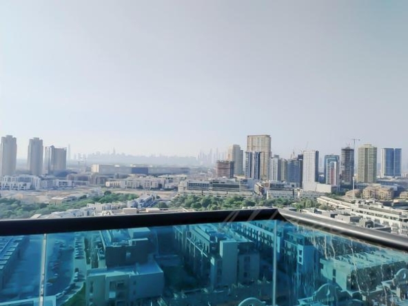 The resort-style pool, children’s play area, and fully equipped fitness center make the property one of Jumeirah Village’s most desirable